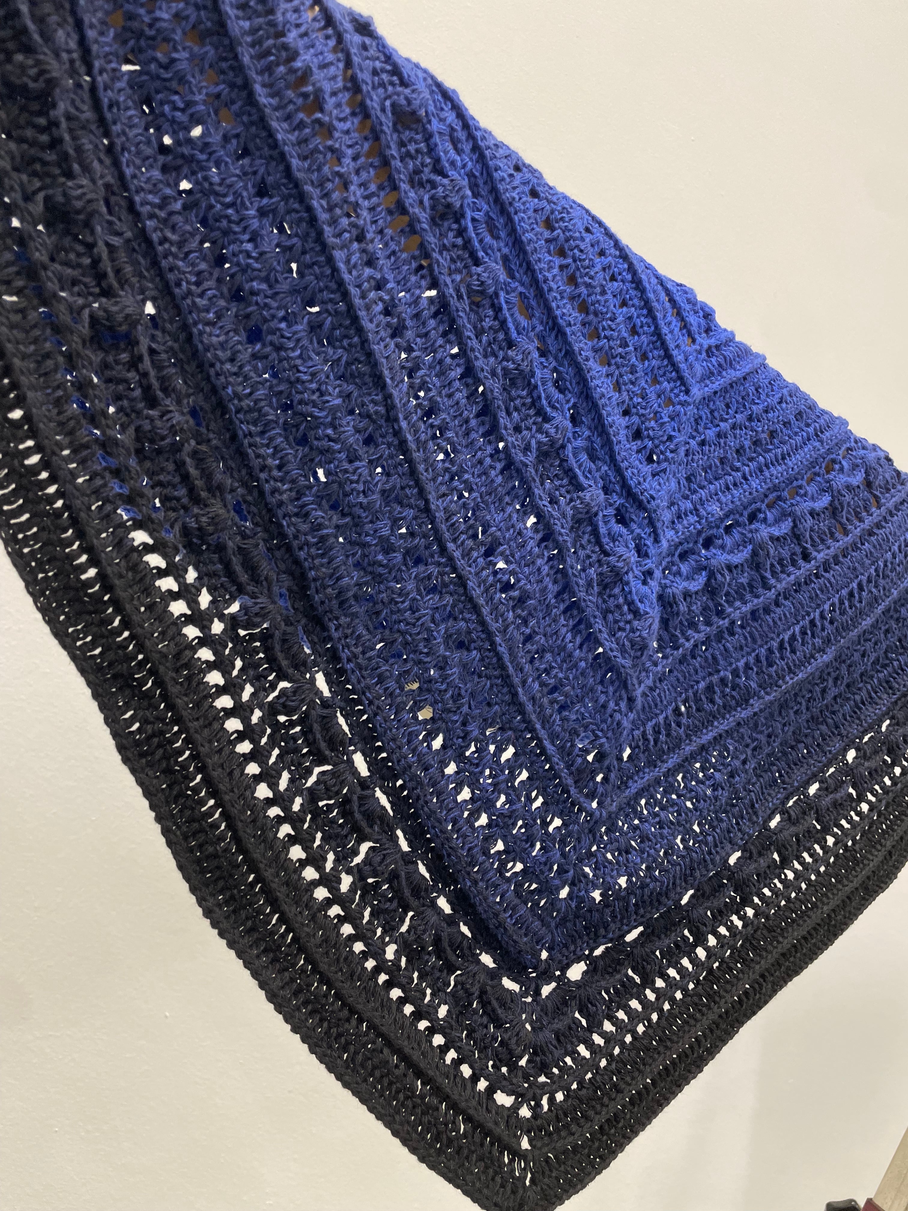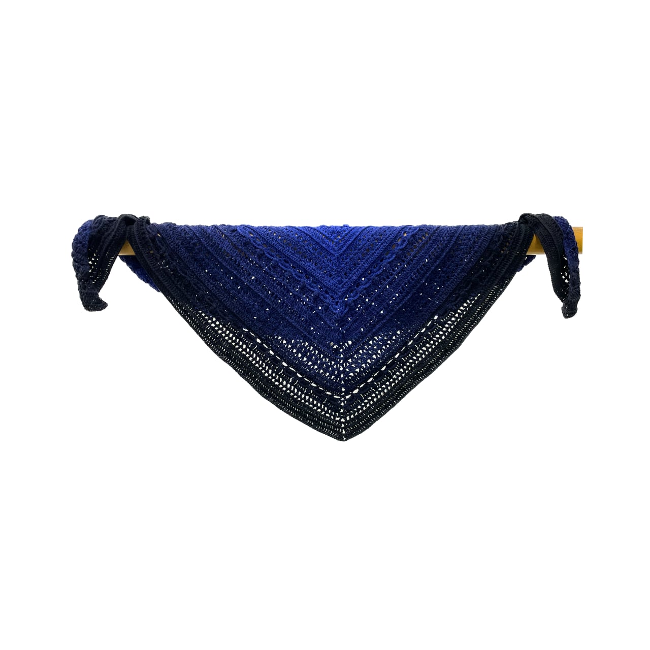 With its deep blue-black gradient, this cotton triangle shawl adds a touch of mystery and elegance to your wardrobe.