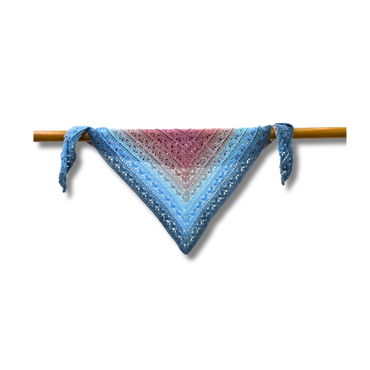With its stunning gradient and cute ribbon pattern, this cotton-acrylic triangle shawl is a must-have.